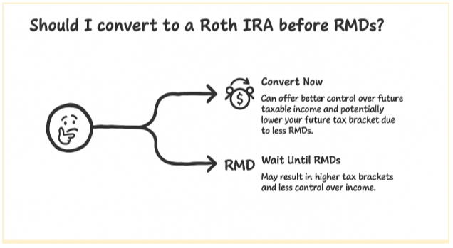 The period before RMDs begin (typically age 73, but subject to change) often presents a "sweet spot" for Roth conversions. During this time, you may have more control over your taxable income and can strategically convert funds to a Roth IRA without triggering higher tax brackets due to RMDs.